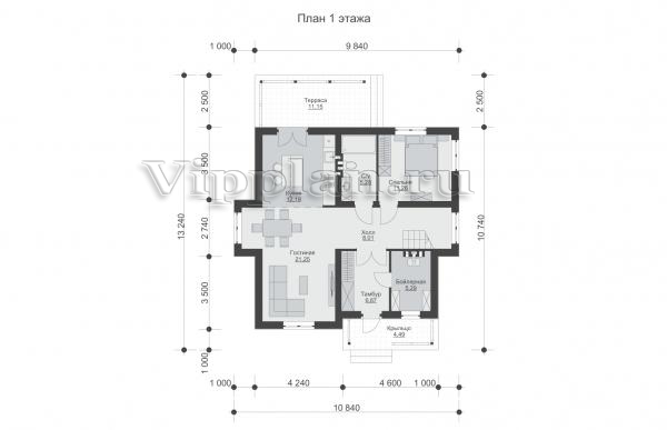| Размеры дома: | 10.84м×13.24м |