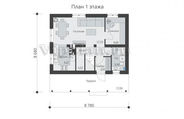 | Размеры дома: | 8.68м×8.78м |