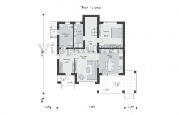 | Размеры дома: | 13.84м×15.14м |